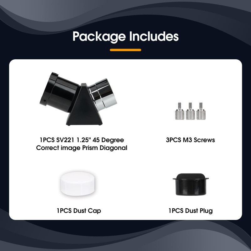 El SVBONY SV221 de 45° es un accesorio óptico de precisión que permite desviar la trayectoria visual para ofrecer una experiencia de observación más cómoda y natural con tu telescopio.