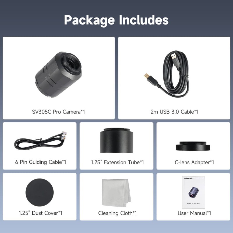 | Software recomendado | Windows: SharpCap / Linux: Captura AstroDMx / Raspberry Pi: Captura AstroDMx / Mac OS: Captura AstroDMx. Para más compatibilidad con software, consulte la compatibilidad con SVBONY. |