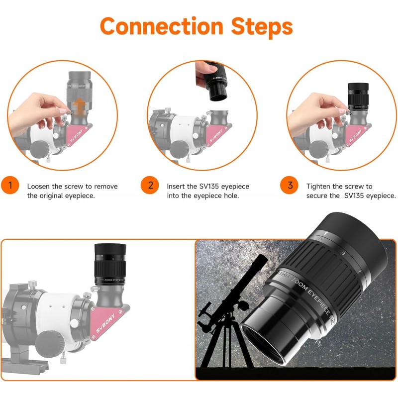 El ocular SV135 es un buen asistente para observar y tomar fotografías de los planetas, lo que resulta más cómodo para ver la Luna, Júpiter y Saturno.