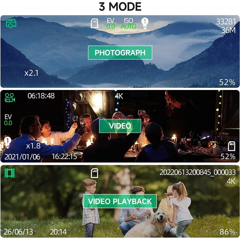 Súper Alta Resolución: Binoculares con visión nocturna y día con iluminador IR ajustable de 7 niveles 850NM. Las imágenes de 36MP y los videos 4K se almacenarán en la tarjeta TF, puedes revisar los momentos maravillosos en cualquier momento, o descargar y compartir con tus amigos