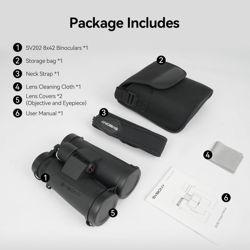 Binoculares SVBONY SV202 ED 8x42 – Prismas BAK-4, Lentes FMC, IPX7