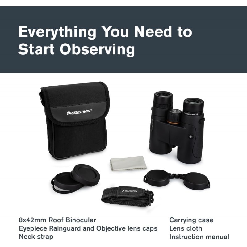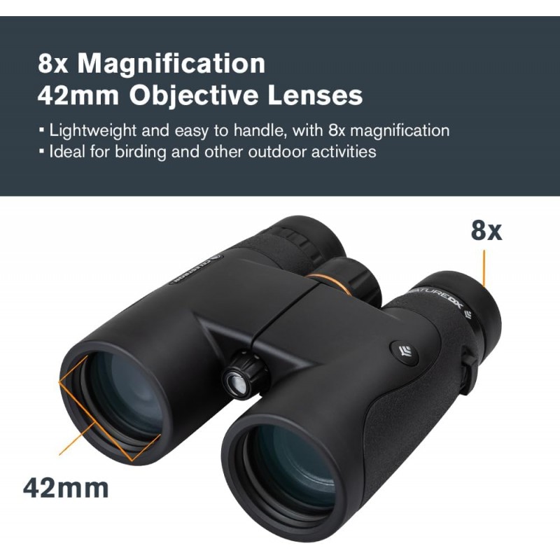 Binoculares Celestron Nature DX 8x42 – Prismas BaK-4 con recubrimiento de fase, Lentes Fully Multi-Coated, Impermeables y Antiempañantes, Enfoque cercano 2 m