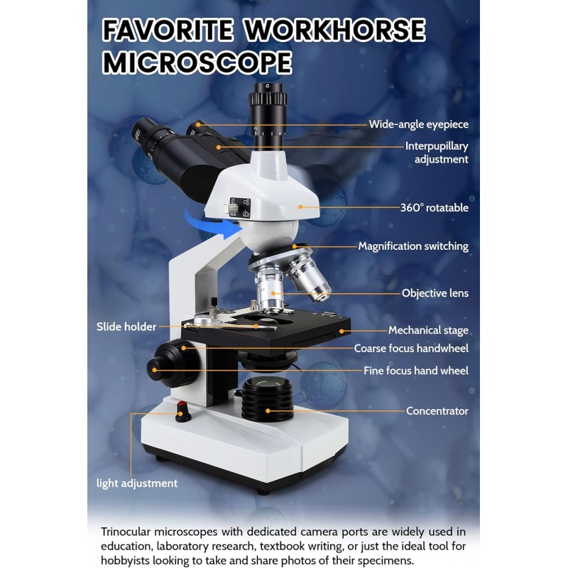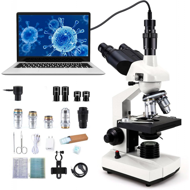 ✨ Con el Microscopio Trinocular 40X-5000X con cámara digital 2MP, tendrás un equipo completo para observar, capturar y compartir el mundo microscópico con calidad y precisión.