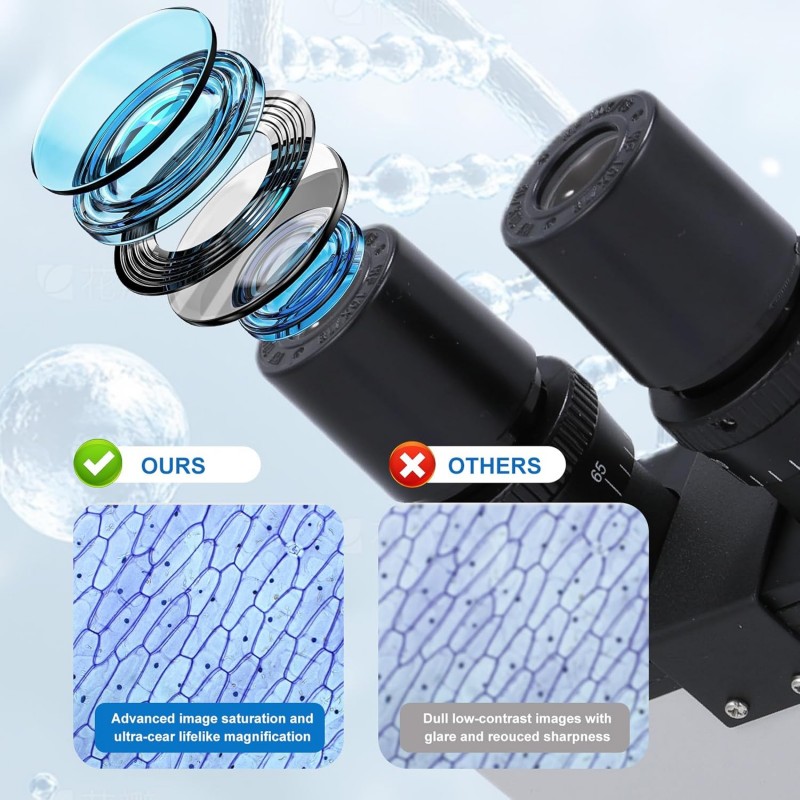 - Óptica acromática: reduce franjas de color y mejora la claridad general.
