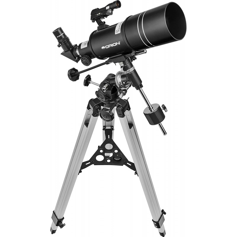 ¡Este telescopio refractor de corta distancia focal ofrece vistas maravillosas del cielo nocturno! No necesita un telescopio grande y voluminoso para disfrutar de la astronomía del patio trasero. Nuestro potente y pequeño telescopio refractor ecuatorial Orion Observer 80ST demuestra lo contrario. Compacto y sin problemas, es fácil de llevar afuera y configurar, y fácil de llevar cuando haya terminado. De hecho, esta "pequeña maravilla" es tan versátil que incluso puede colocar el tubo del telescopio en un trípode de cámara para aventuras de telescopio de día.