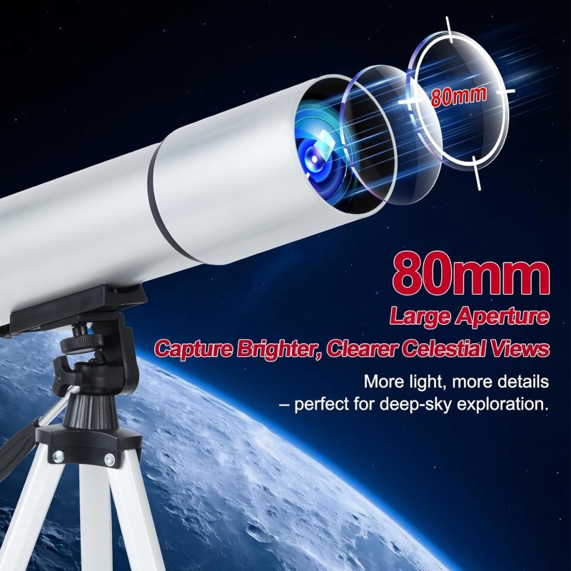 ✅ Apertura de 80 mm, excelente captación de luz para observaciones detalladas.