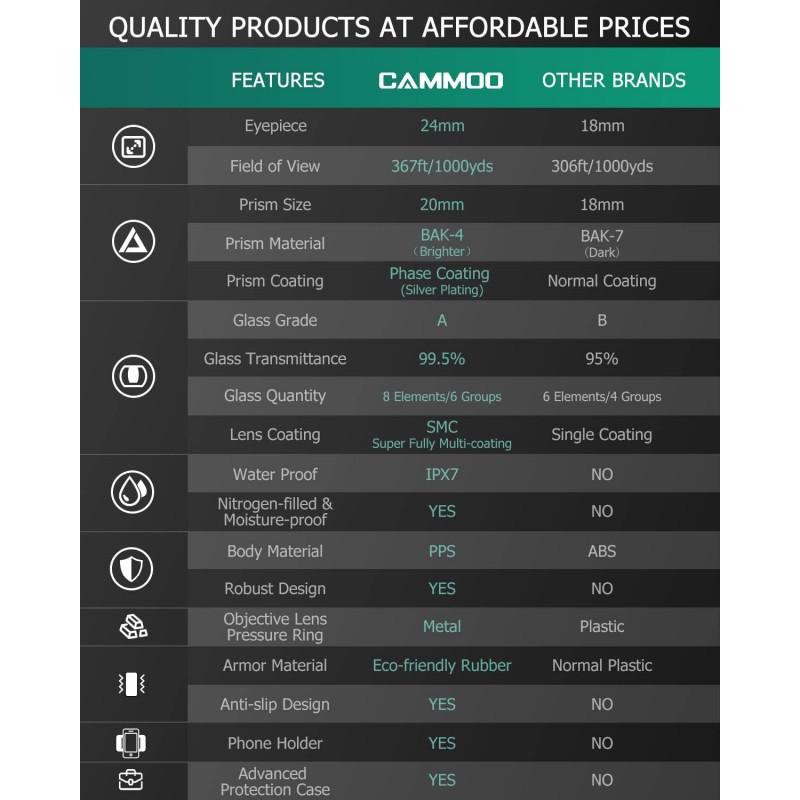 ✨ El CAMMOO 12×50 combina potencia, portabilidad y funcionalidad, siendo una excelente opción para quienes buscan calidad visual y posibilidad de capturar fotografías en sus aventuras.