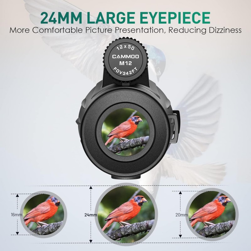 El monocular CAMMOO 12×50 es ideal para observación de naturaleza, aves, viajes y actividades al aire libre. Ofrece un acercamiento potente y una excelente entrada de luz para obtener imágenes claras incluso al atardecer o en ambientes de poca luz.